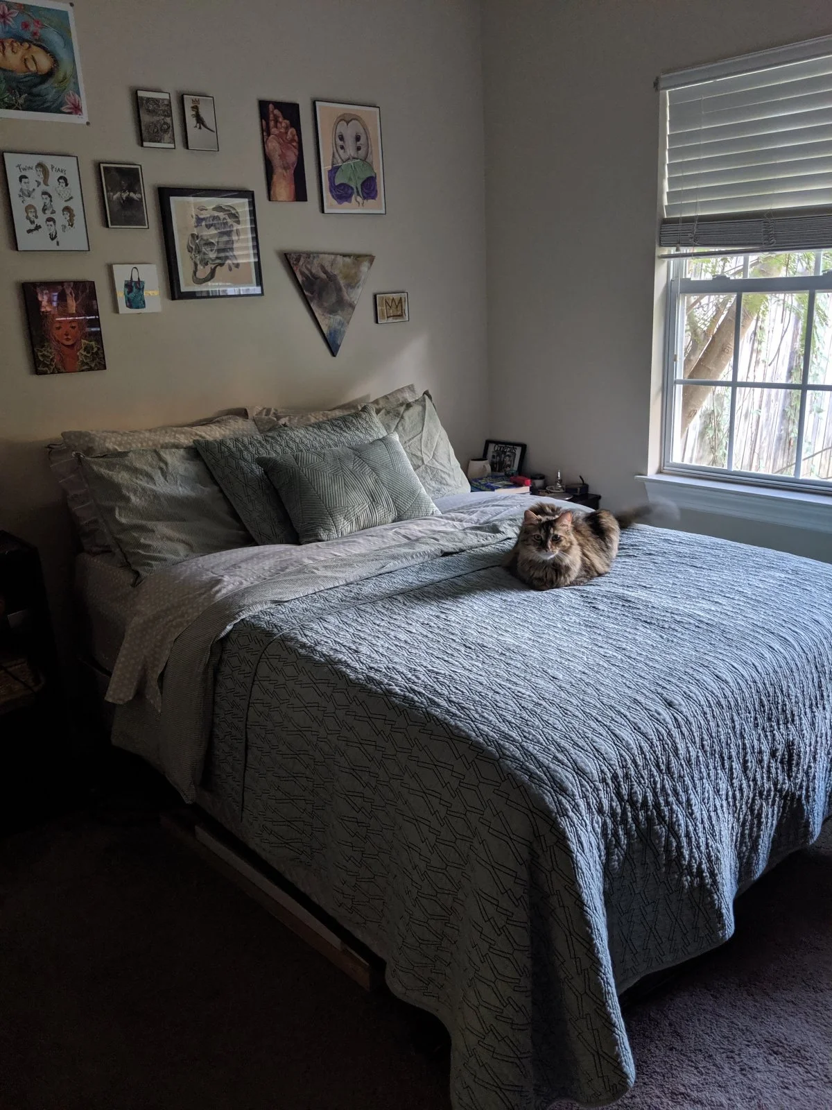 My best friend and I found an adorable little townhouse in June of 2018 and had six months of the dream. Two gals in their early twenties, working their asses off at barely above minimum wage jobs that had nothing to do with the degrees we just spent exhaustive hours and dollars working towards. In these years between 2018 and 2021 Magnolia lived under the bed and was almost given away multiple times. These were its dark ages. It observed my first go at playing house with a significant other, my first “real” (read - salaried) job, and a second kitten! A time when it felt right to back burner my personal artistic pursuits and the further development of my skills.