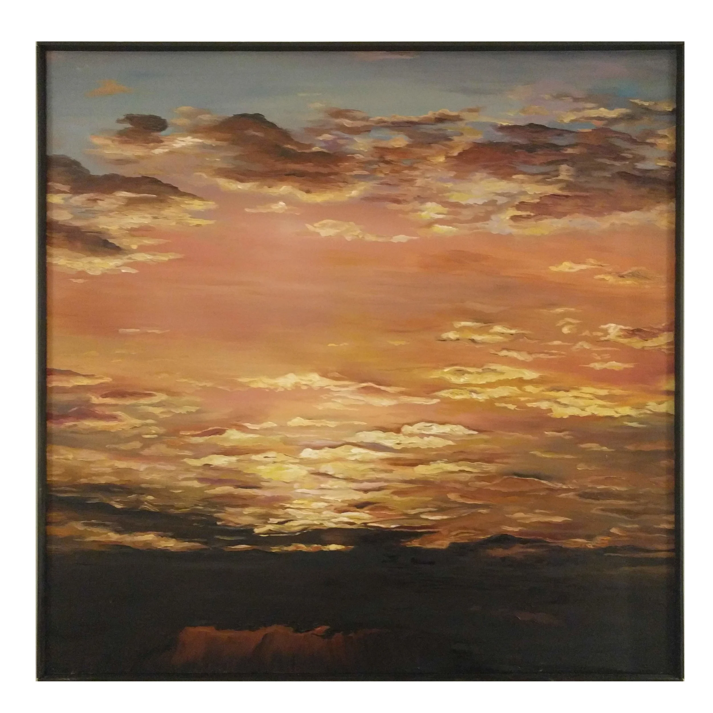 This collection of work focuses on the universally experienced imagery of clouds. I tone canvases with vibrant hues and allow color to influence the formation of the cloudscapes I create. The ephemeral nature of clouds leads me to consider them a form of abstraction in nature. In my work, I use this imagery to vacillate between representative and abstract painting. I heighten the feeling of abstraction by omitting subject matter that would bring the context of scale to my compositions. I want viewers to be able to visually land in these pieces and be offered a backdrop to project their personal moment by moment perceptions of consciousness.